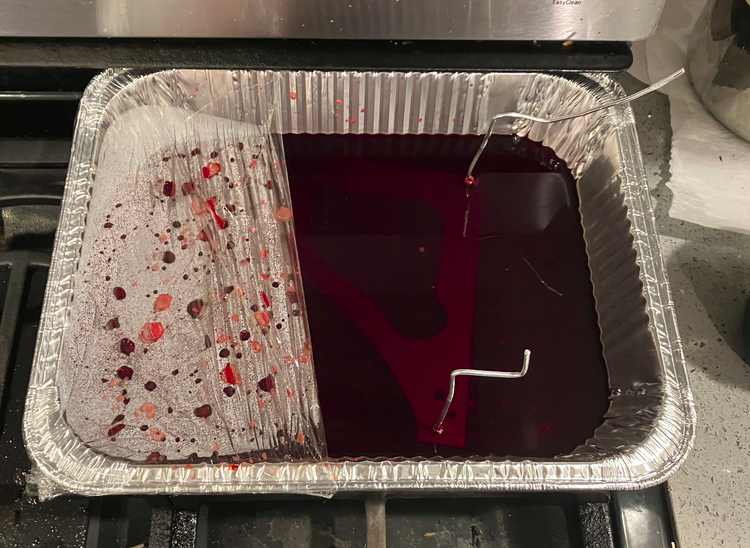 - Immerse in heated clothing-dye solution for 15 minutes