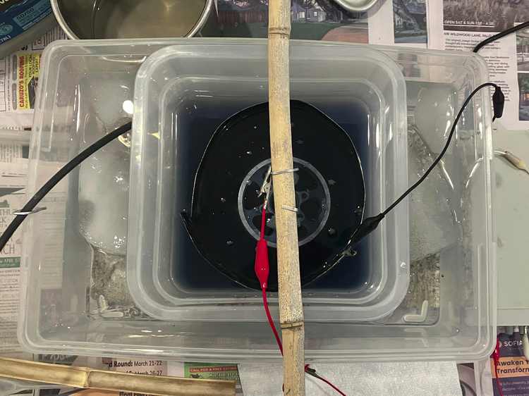 I chose sodium bisulfate for the electrolyte because it’s a bit safer and easier to obtain than sulfuric acid, and produces very similar results. I followed the recommendation of most online guides and prepared a solution of 20% sodium bisulfate by weight, which corresponds to a concentration of about 2 M.
