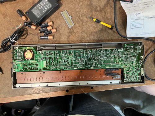 Someone also brought in a Yamaha synthesizer keyboard which wouldn’t turn on. It turned out that one of the PCB traces attached to the DC barrel jack was cracked, presumably due to some violent event. I used a piece of copper wire to bridge the gap, soldering it between the offending pin on the DC jack and the next solder joint on the trace (after the crack). This was sufficient to fix it completely, and the synthesizer worked under external power as well as battery power after that.